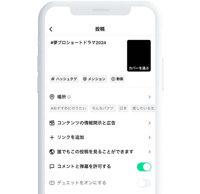 つけて動画をTiktokに投稿